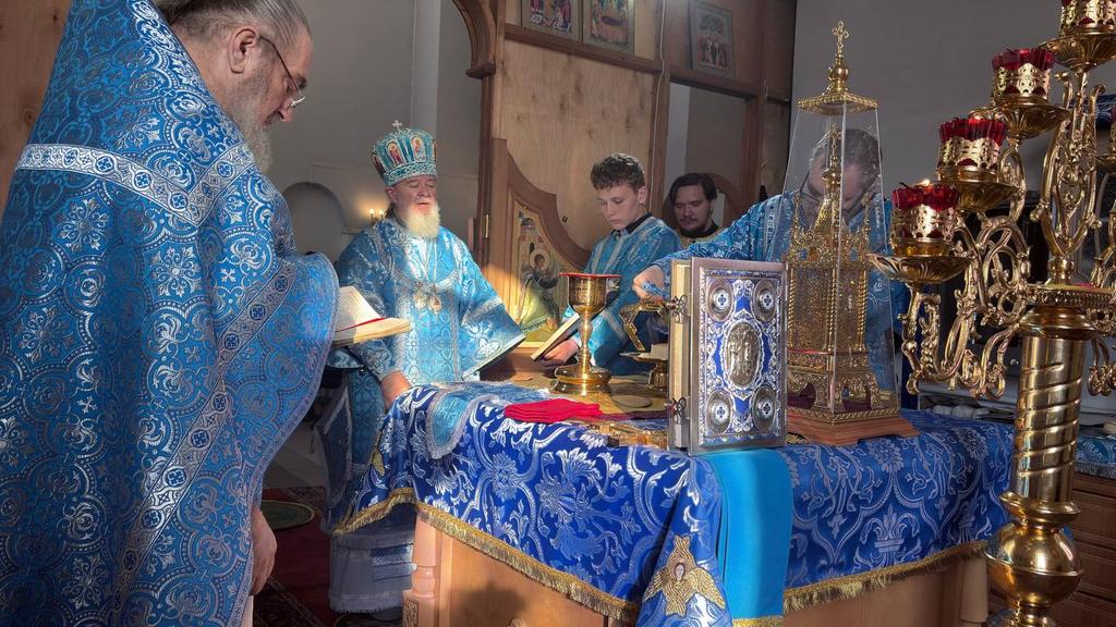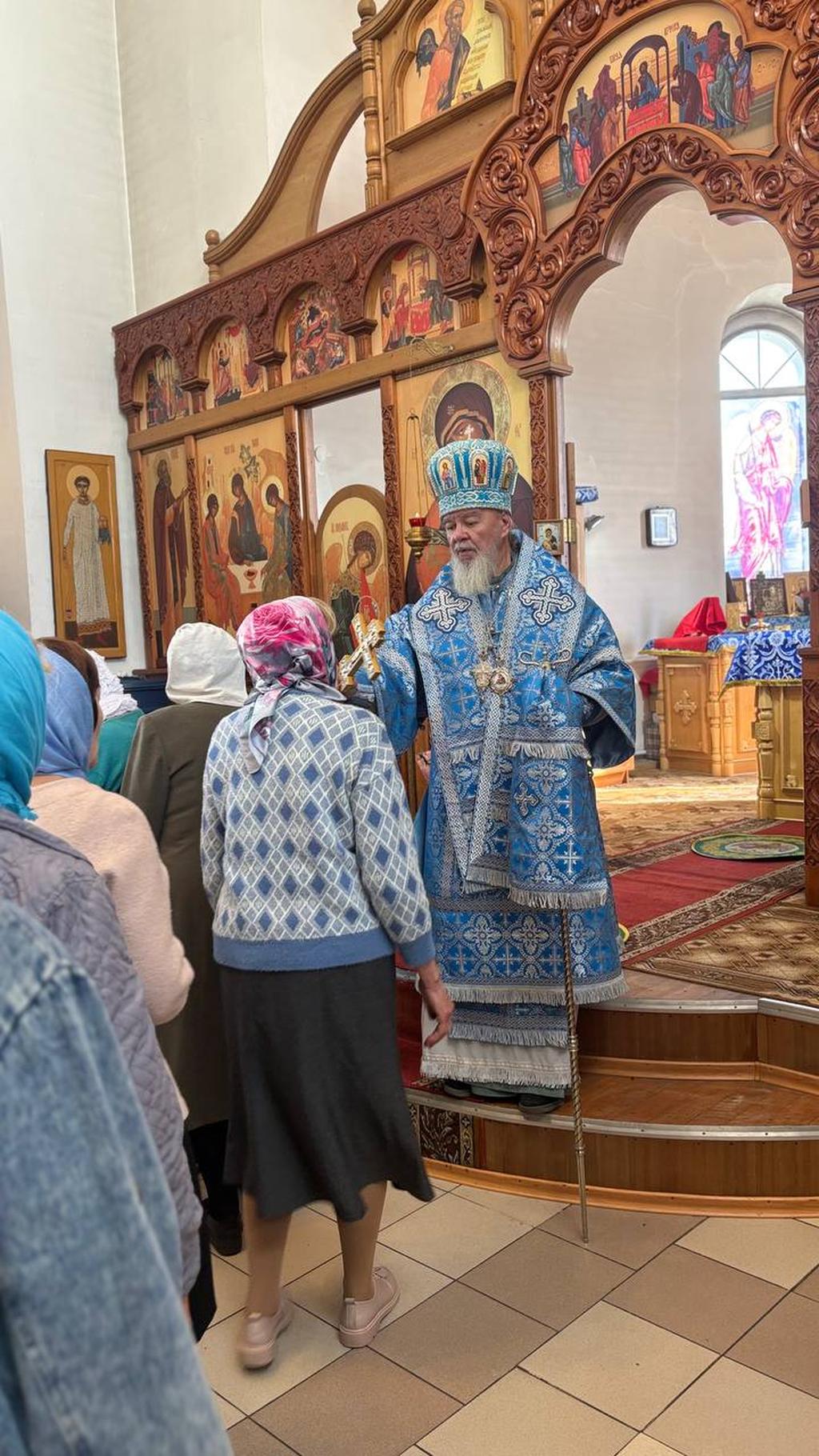 Его Преосвященству сослужили: настоятель храма протоиерей Сергий Лепешев; диакон Димитрий Рыженков.