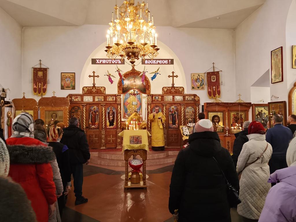 Его Преосвященству сослужили: настоятель храма протоиерей Тимофей Морев, клирик храма иерей Константин Голубев, диакон Димитрий Рыженков.