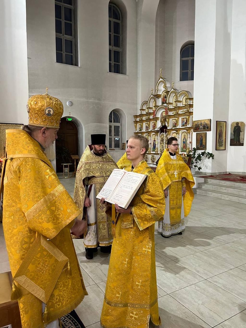 За богослужением пел сводный хор под управлением регента Спасского кафедрального собора Ксении Клинг.