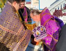 По Великом Славословии на центр собора был вынесен Честной Животворящий Крест Господень и совершен Чин Воздвижения.