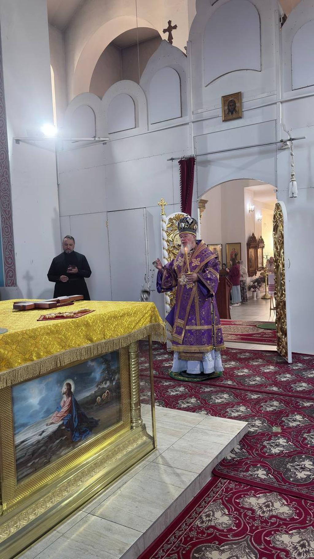 Его Преосвященству сослужил иерей Макарий Государкин.