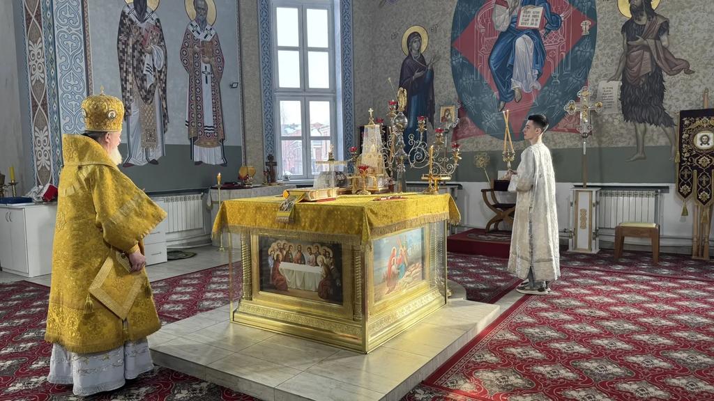 22 февраля епископ Каинский и Барабинский Владимир совершил Божественную литургию в Спасском кафедральном соборе города Куйбышева.