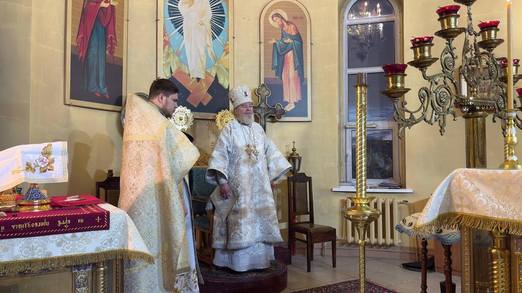 Его Преосвященству сослужили: секретарь Каинской епархии иерей Павел Говоров; диакон Георгий Бекарев.