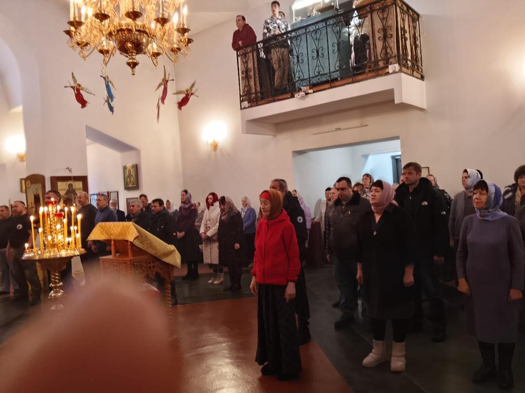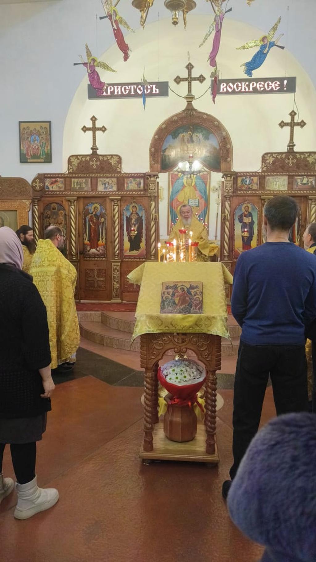 Его Преосвященству сослужили: настоятель храма протоиерей Тимофей Морев, клирик храма иерей Константин Голубев, диакон Димитрий Рыженков.