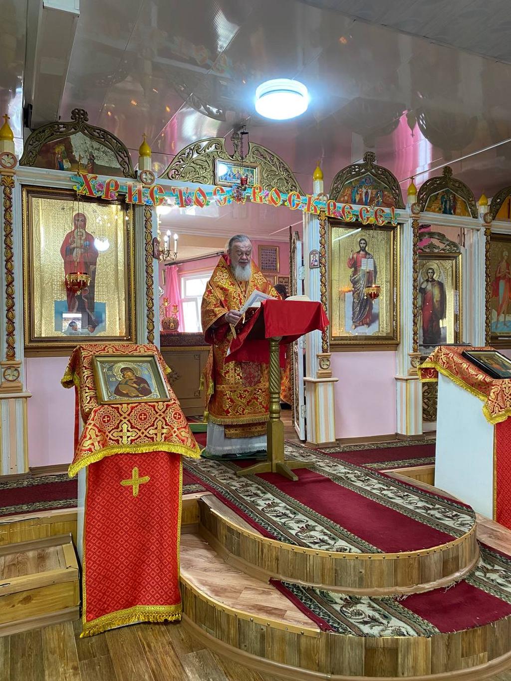 В неделю святых Жен Мироносиц епископ Владимир совершил Литургию в храме во имя великомученика Пантелеимона п. Озеро Карачи