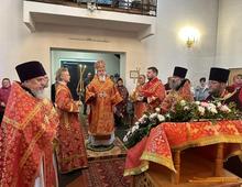Его Преосвященству сослужили: протоиерей Тимофей Морев, иерей Артемий Килин, иерей Михаил Рыжинков, иерей Павел Говоров ,иерей Константин Голубей, дьякон Дмитрий Рыжинков